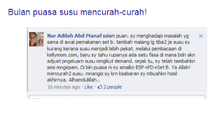 Salam dan Selamat petang semua untuk pengunjung mommieadrina..Esok insyaAllah kita semua yang muslimin berjumpa lagi dalam bulan ramadhan..Alhamdulillah..Ramai ibu menyusu yang risau akan kesihatan diri dan bayi mereka akibat kekurangan susu badan di bulan puasa.Semasa berpuasa ramai ibu menyusu yang akan mengalami nyahhidrat dan kekurangan tenaga untuk menyusukan bayi.Hal ini akan menjejaskan kesihatan ibu dan bayi.